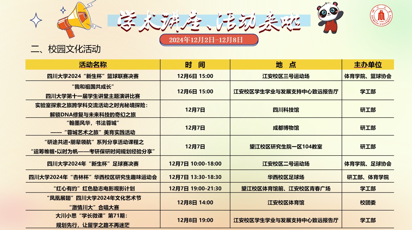 yl23411永利(集团)有限公司官网2024年12月2日-12月8日讲座及校园文化预告