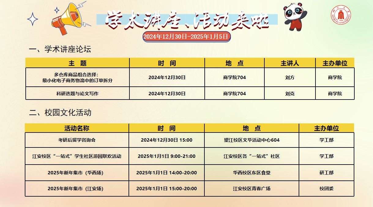 yl23411永利(集团)有限公司官网2024年12月30日-2025年1月5日讲座及校园文化预告