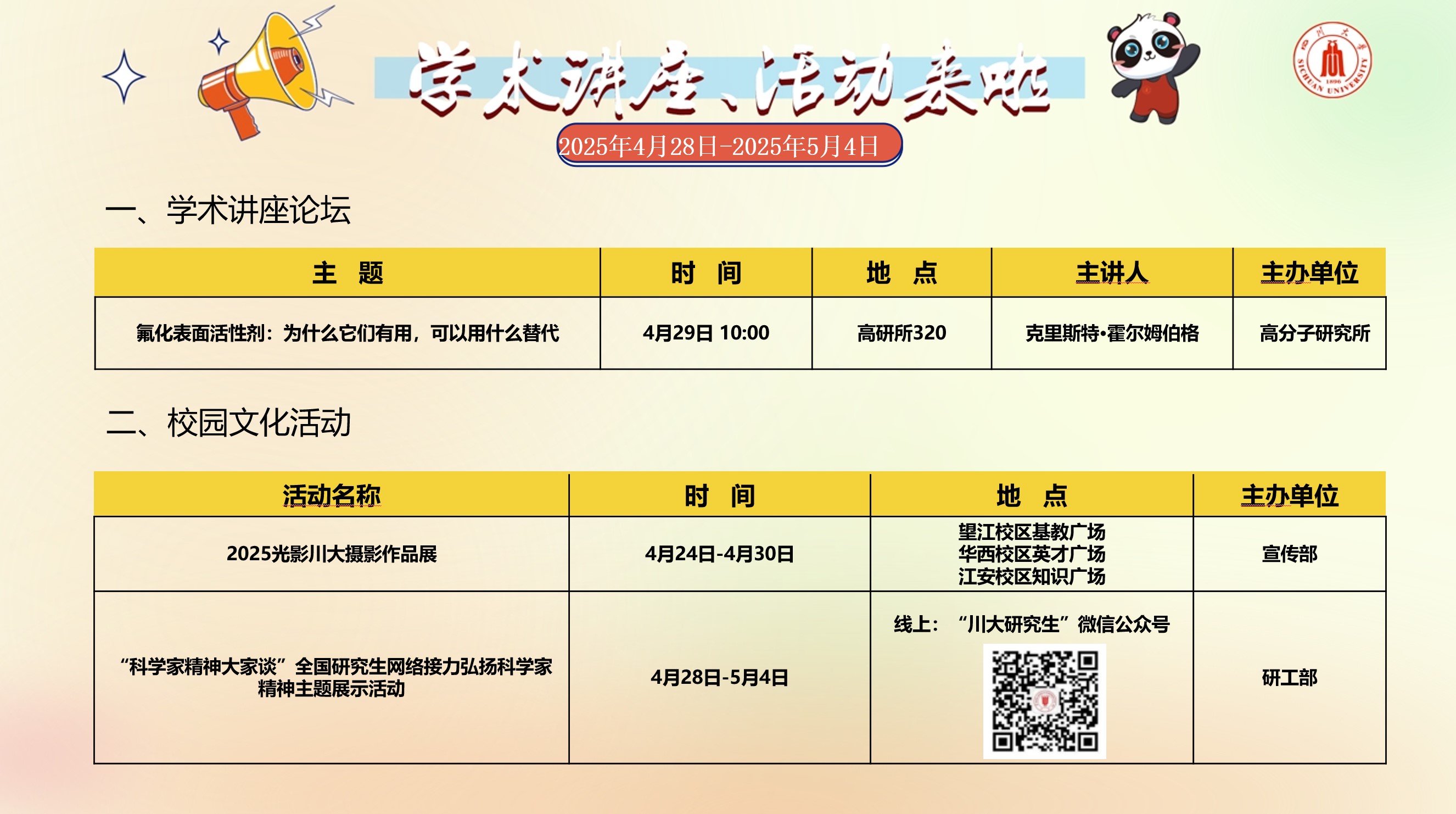 yl23411永利(集团)有限公司官网2025年4月28日-5月4日学术讲座论坛及校园文化活动预告