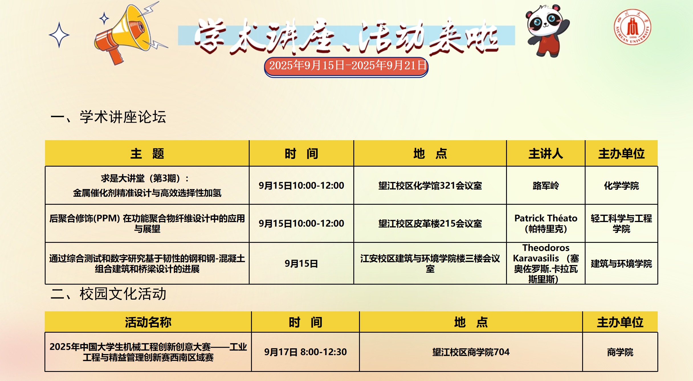 yl23411永利(集团)有限公司官网2025年9月15日-2025年9月21日校园文化活动预告
