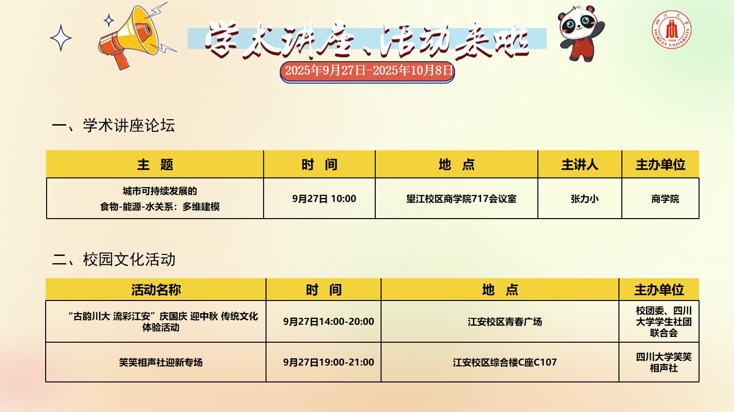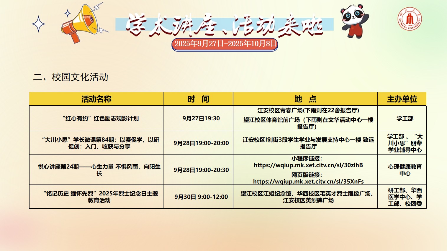 yl23411永利(集团)有限公司官网2025年9月27日-2025年10月8日校园文化活动预告