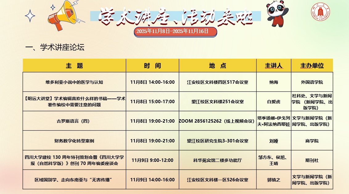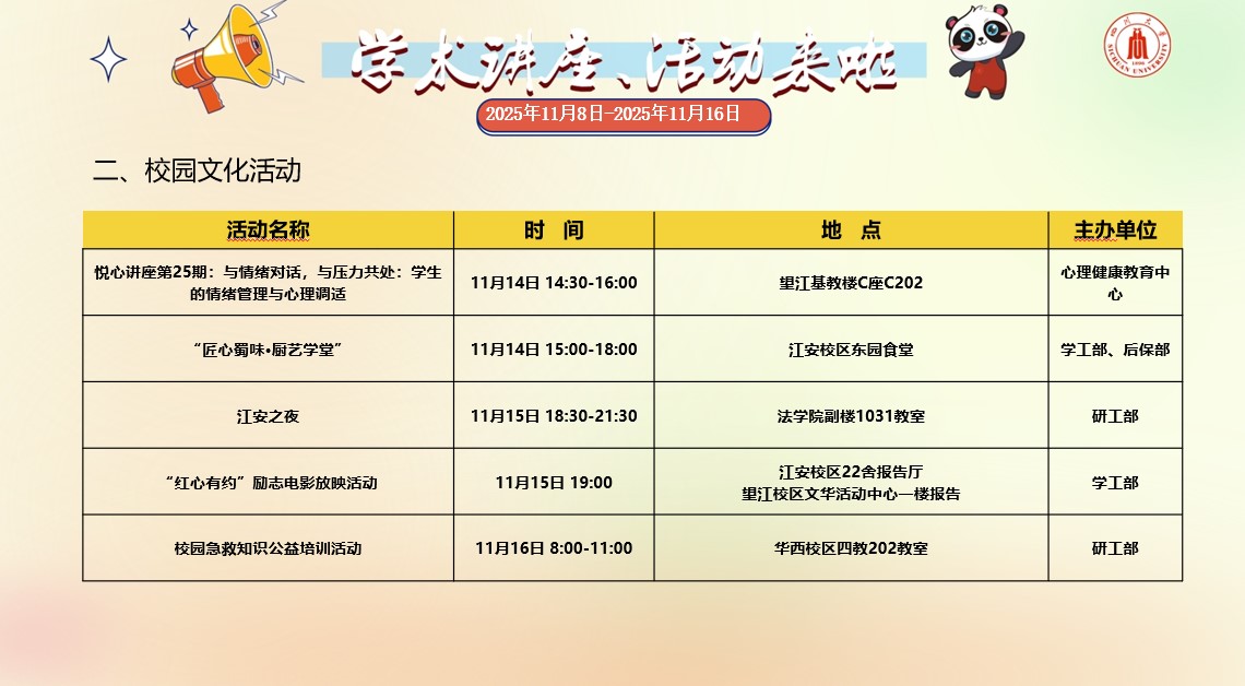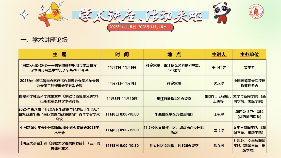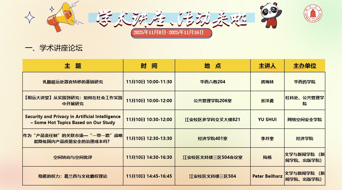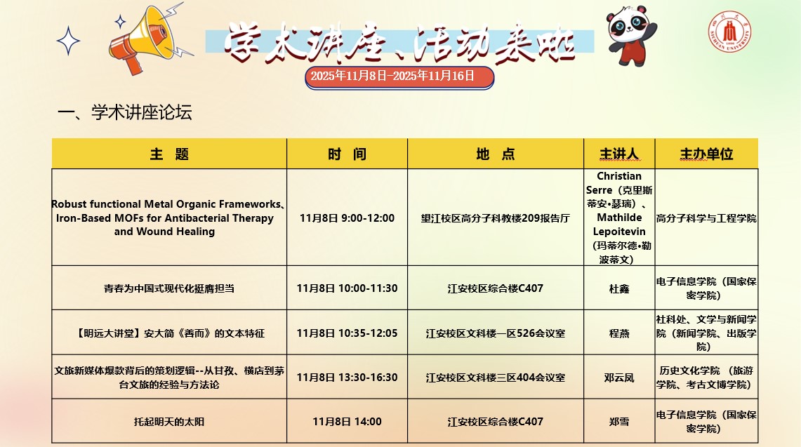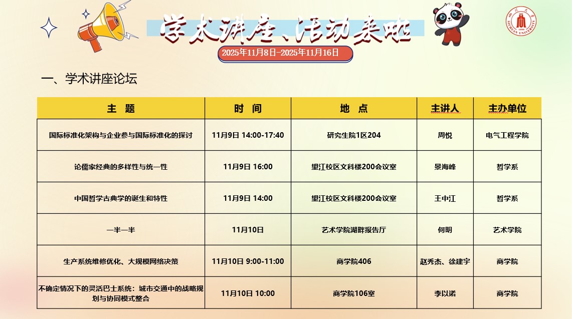 yl23411永利(集团)有限公司官网2025年11月8日-11月16日学术讲座和校园文化活动预告