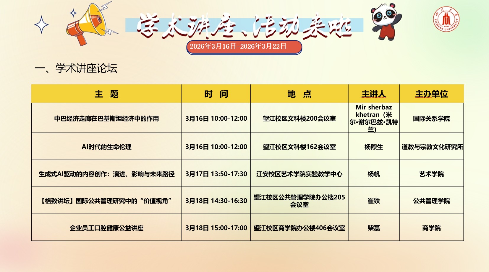 yl23411永利(集团)有限公司官网2026年3月16日-2026年3月22学术讲座预告