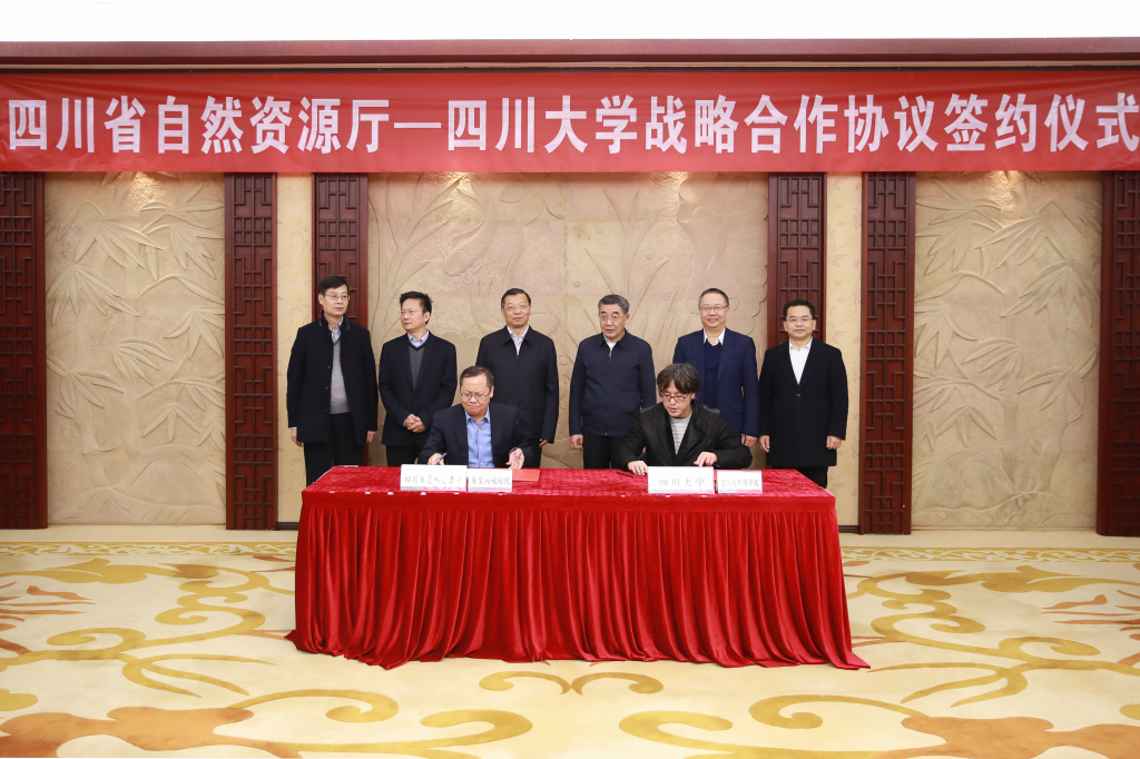 12月8日,四川省自然资源厅-yl23411永利(集团)有限公司官网战略合作签约仪式在学校望江校区明德楼举行。四川省自然资源厅党组书记、厅长、省自然资源总督察孙建军,党组副书记、副厅长田文,党组成员、总规划师陈涛;校党委书记王建国,副校长梁斌、褚良银,及双方相关单位负责人参加签约仪式。