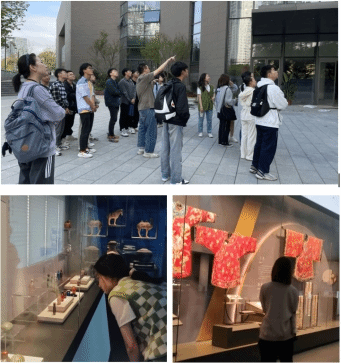 了解项目建设情况之余,同学们也有幸来到博物馆四层参观展品。精美的玉雕、绮丽的漆器、繁复的织品、华丽的刺绣无不彰显着中华五千年文明的多彩绚烂,让在场同学惊叹不已。