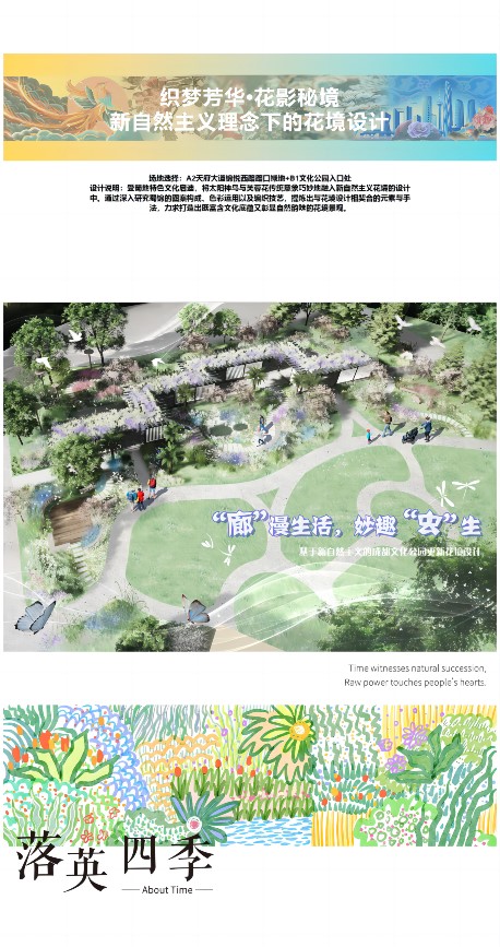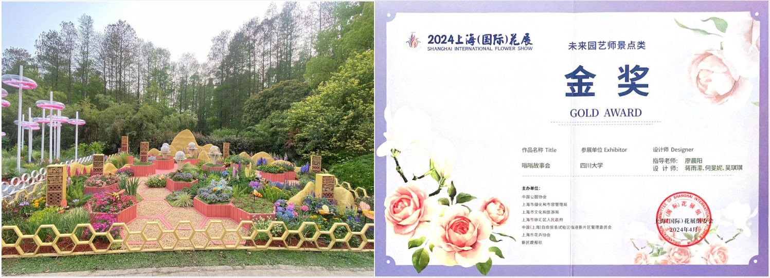 “未来花园设计师”大学生设计竞赛是以2024上海(国际)花展为平台的全国性大学生园林设计类赛事活动,旨在推动高校在生态文明、美丽中国建设等领域的合作交流与专业人才培养,展现“Z世代”未来花园设计师的非凡灵感和对“人民城市”建设的深入思考。风景园林硕士研究生蒋雨濛、何旻妮和吴琪琪的作品《嗡嗡故事会》(指导教师:廖晨阳)荣获金奖,该作品在2024上海(国际)花展落成并向公众展示。
