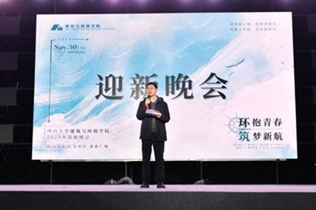 戴峰院长作开场致辞,向学院2024级新生表达了诚挚的欢迎和殷切的期望,鼓励大家要不畏坎坷、勇往直前,保持青春朝气、勇敢追梦,在川大、在建环度过一段难忘的大学时光,并预祝迎新晚会取得圆满成功。