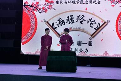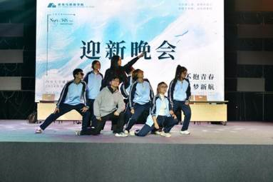 第二幕“浪涌乘风”中,戴峰院长为大家带来的歌曲《偏偏喜欢你》,融入了院长对新同学们的希冀与祝福,拨动着在场每一位同学的心弦;国风乐器表演《打狗柳桥》将东西方乐器融合,尽显别样意境;热情似火的rap表演《Be Young Forever》用潇洒的说唱诠释积极态度,用呐喊歌颂美好青春;相声表演《满腹经纶》两位同学口才伶俐、包袱连连,现场笑声此起彼伏。