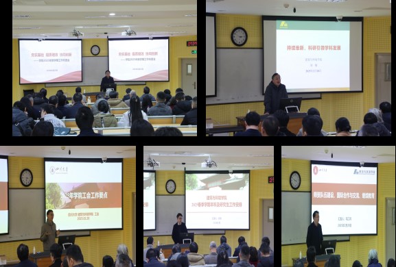 学院党委副书记兼纪委书记孙伯雷围绕学院党建工作、学生工作、校地合作及校友工作,以及落实纪委监督责任作了具体工作安排。副院长刘敏以“持续维新,科研引领学科发展”为主题作了发言。工会主席楚英豪围绕学院工会工作及离退休工作的具体开展作了布置。院长助理吴潇、毛江鸿就学院本科及研究生工作、师资队伍建设、国际合作与交流、继续教育工作先后作了发言。