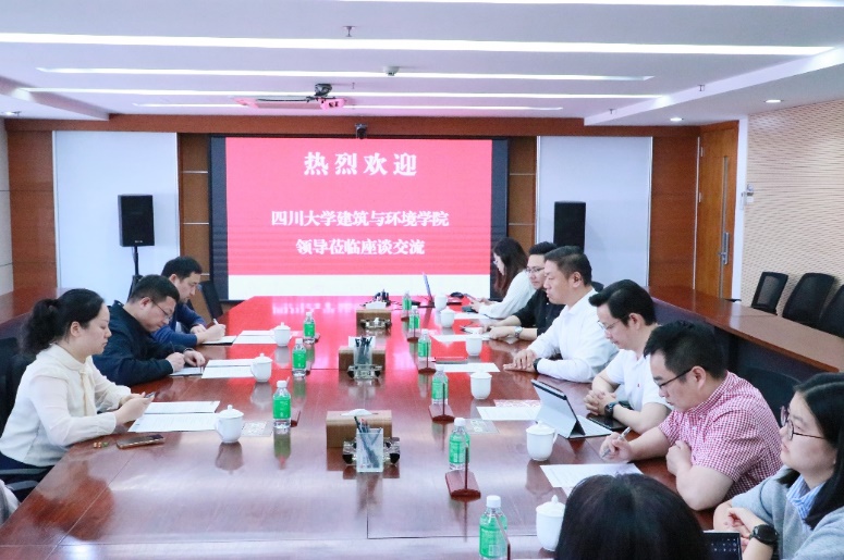 在广东省城乡规划设计研究员科技集团股份有限公司,公司党委书记、董事长、总经理王晖,人力资源部部长王卫征,人力资源部助力主管刘琳,校友代表粤规院湾区(广州)规划设计有限公司副总经理、学院2004级环境科学专业本科生张一帆,国土空间创新所助理总监,高级工程师、学院2004级城市规划专业本科生黄浩,2019级风景园林专业硕士生王诗源,2020级城乡规划硕士生黑清敏参与此次交流。王晖向孙伯雷一行表示欢迎,对学院历年来向公司输送了众多优秀人才表示感谢。他从“市场化转型”“全面转型”和“科技化转型”三个维度介绍了公司近年来在建筑行业升级转型过程中的探索与发展。孙伯雷就学院人才培养、科学研究、社会服务等方面情况做介绍,希望未来不断加强同用人单位的合作交流,深化合作,共同培育更多优秀人才。