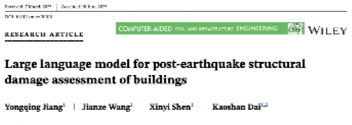 近日,学院土木工程系戴靠山教授团队王健泽副研究员在《Computer-Aided Civil and Infrastructure Engineering》(Computer-Aided Civ. Inf.)在线发表了题为《Large language model for post-earthquake structural damage assessment of buildings》的论文。学院2022级土木工程专业博士研究生江永清为论文唯一第一作者,王健泽副研究员为论文唯一通讯作者,yl23411永利(集团)有限公司官网为论文的独立第一单位。论文成果受到国家自然科学基金(52408553 & U24A20177)等项目资助。