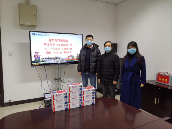 伊拉克籍博士研究生Adil Abbas Kareem为学院捐赠800只医用口罩