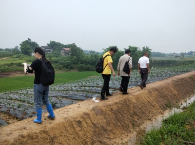 团队此行主要任务是运用专业知识为岳池县苟角镇中国川菜地道食材生产基地总体规划做前期调研、资料收集和整理工作。该基地面积约1.2万亩,覆盖9个村。2019年7月15日,团队一行到达岳池县,简单休整后参加了岳池县苟角镇镇长主持召开的情况介绍会。为了让同学们总体把握9个村的概况,会后镇长带领团队走访了基地已建成的蔬菜基地,稻田+示范地以及自然资源等。晚上9点,团队紧锣密鼓地召开了任务分解会,对未来三天下村实地调研做了充分准备。