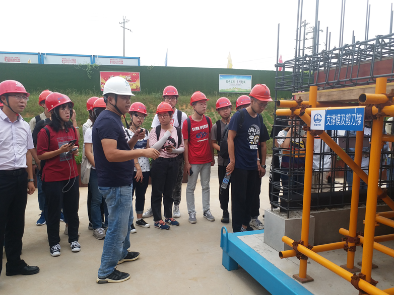 29日,同学们来到了位于天府新区黑龙滩的中铁四川国际生态城。同学们首先参观了湖畔山居别墅项目。项目负责人以及工程师们详细地为同学们介绍了电气管线埋设、楼梯样板、主体结构样板、楼梯样板、钢筋绑扎以及支撑模及剪刀撑的模型。