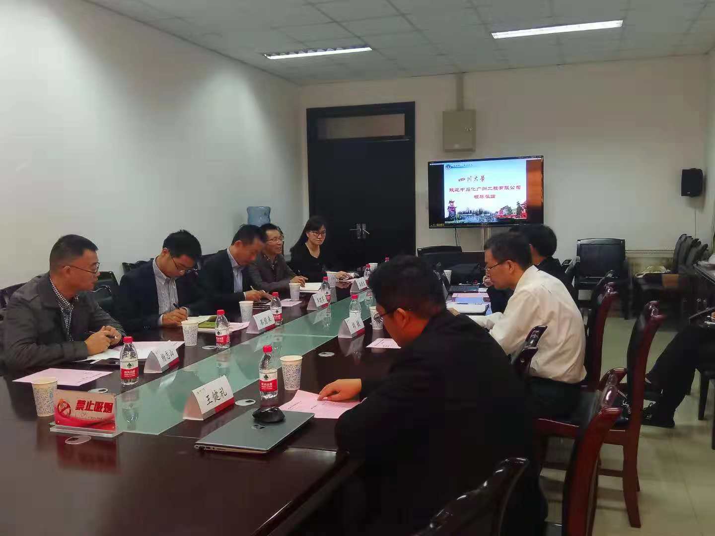 会前,由江霞教授带领中石化广州工程有限公司来访人员参观产业研究院。随后,交流会议由李建军教授主持,介绍了交流合作双方来宾。高德友副部长发表欢迎致辞,并对yl23411永利(集团)有限公司官网和中心的历史进行介绍,对未来的发展方向进行了指导。