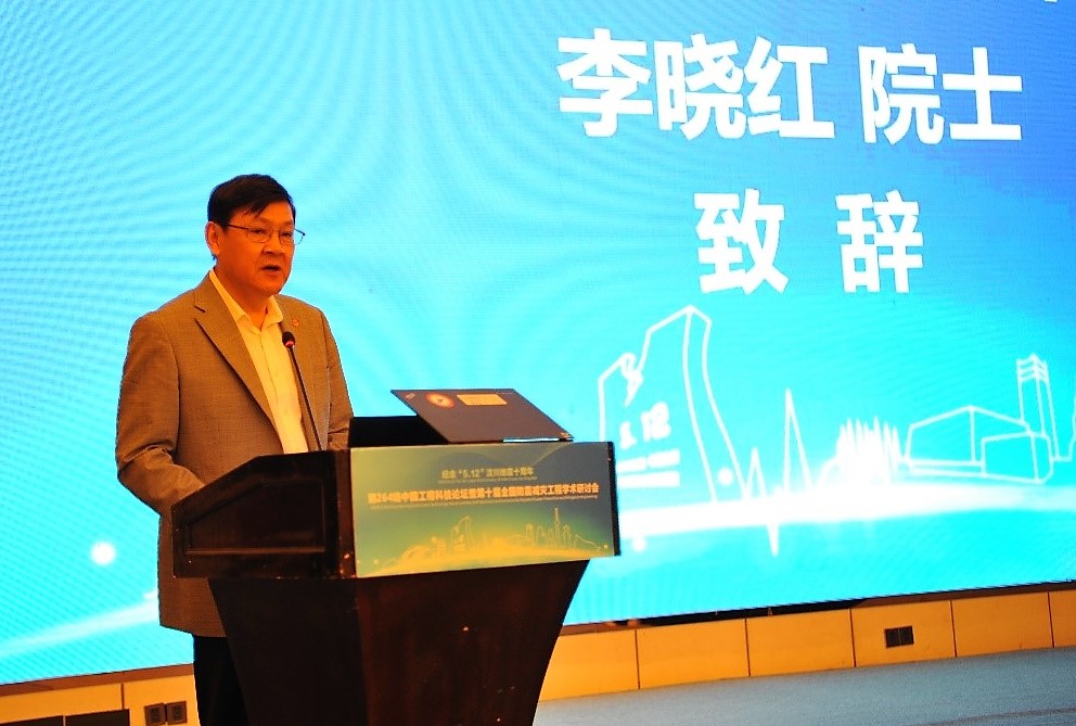 李晓红代表大会主办方中国工程院致辞。他表示,党和政府高度重视防灾减灾工作,党的十九大提出“提升防灾减灾救灾能力”,习近平总书记为此做出了一系列全面部署,专门成立了国家应急管理部。我国工程领域的院士和专家坚持长期坚持工作在一线,为我国的防灾减灾、抗震救灾、灾后重建事业做出了重要贡献。此次会议的举办既是为了纪念5.12汶川大地震十周年,也是我们土木水利建筑工程领域的一项重要学术活动。此次会议的召开必将促进防灾减灾、灾后重建工程技术的创新发展,促进相关学科的科研成果更好地实践运用,为国家综合防灾减灾体系建设,提升我国防灾减灾能力做出新的贡献。