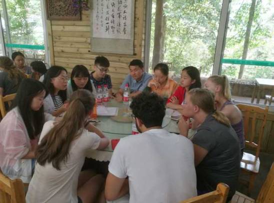 调查访问的基础上,交流营的同学们对自己所考察到的信息和问卷内容进行了深入探讨,澳大利亚、爱尔兰及意大利的老师和同学介绍了各自的发现,师生开展了广泛讨论。期间,有幸邀请到当地相关村委干部,针对上午所提出的问题和看法,与村委干部进行了长时间互动和深入讨论交流。获得了不小的收获。整天我们都处于思维的激烈碰撞之中,每一次讨论都是碰撞火花的闪耀,每一个问题都是思维碰撞的结晶。