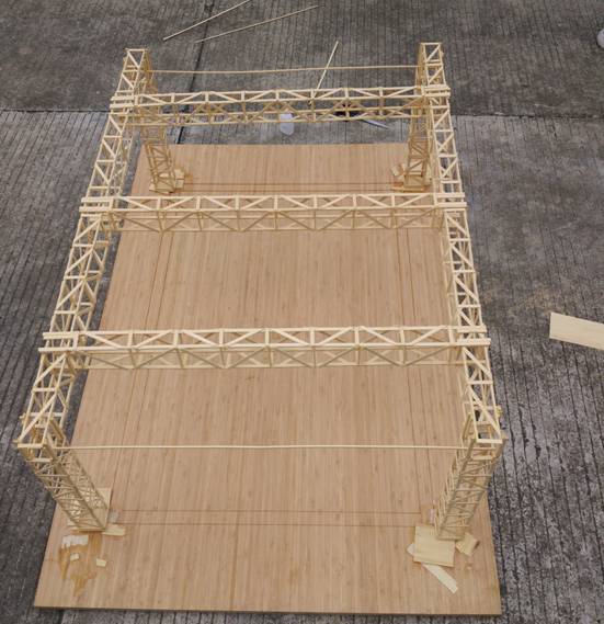 所有的准备工作均已做好后,比赛正式开始。各个参赛队伍按照抽签的比赛顺序依次将模型进行几何尺寸的测量、称重并进行加载。