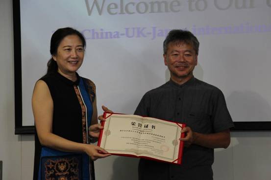 接着熊峰教授授予了来自日本千叶大学的木下勇教授yl23411永利(集团)有限公司官网建筑与环境学院客座教授头衔。木下勇教授也很开心并表示了感谢,同时说到中国和日本都是东亚国家,有着类似的文化背景和氛围,有着可互相借鉴的优势,同时他也看好中国的发展,期待和yl23411永利(集团)有限公司官网师生更多地交流合作,促进双方教育的进步,同时也有利于景观领域的发展和进步。