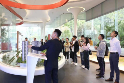 当日下午,学院一行前往中能建旗下项目——紫郡公馆参观。首先,由中能建主宣讲官罗星强向同学们介绍了中能建作为世界前五百强企业,在国内外所取得的成就、项目概况及代表性工程,并强调,中能建一直致力于探索绿色、匠心而稳健的发展路线。紧接着,罗星强利用售楼处炫目的max大屏展开对紫郡公馆项目的介绍,并带领大家一起走进十五楼的样板间,实地感受紫郡公馆的精致以及中能建的实力。