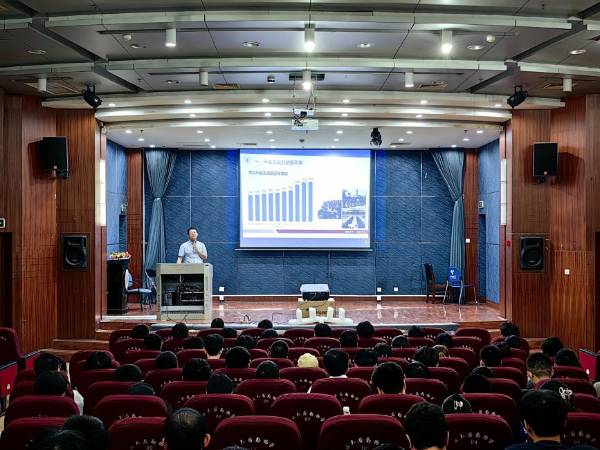 为切实做好2025届本科毕业生的就业与深造指导工作,帮助毕业生进一步了解当前就业、深造形势,科学制定目标,合理规划路径,9月27日,学院在江安校区二基楼报告厅,举行2025届本科毕业生就业深造动员大会暨第六届“护航计划”启动仪式。学院党委副书记兼纪委书记孙伯雷作题为“把个人理想追求融入党和国家事业之中,奋力书写为中国式现代化挺膺担当的青春篇章”的报告,全体2025届本科毕业生参加大会。