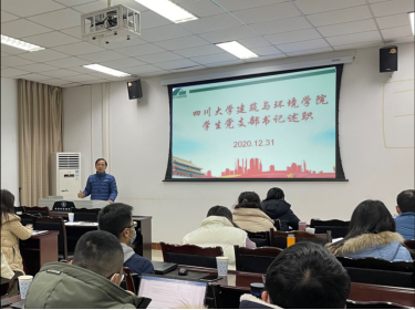 为全面贯彻党的十九届五中全会精神,进一步落实《中共中央关于加强党的政治建设的意见》,学院于2020年12月31日在望江128室举行学生党支部述职报告会,总结过去,思考当下,展望未来。会议由学院党委副书记兼纪委书记孙伯雷主持,学院党委书记蒋文涛,教师党支部书记等共9位老师列会担任评委,学院全体学生党支部书记参加了述职。根据疫情防控要求,与会人员全程佩戴口罩,间隔座位入座。