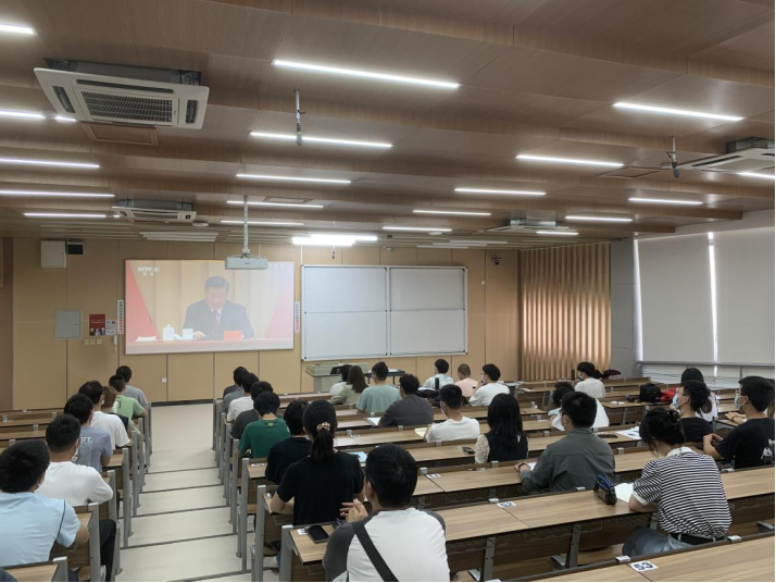 (学院组织本科生在江安校区综合楼C403集中收看直播)