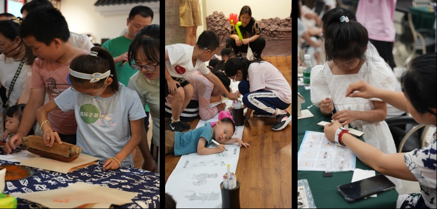 活动根据年龄段设置了不同的项目,包括气球派送、魔术表演、绘本共读、亲子DIY“航天卫星模型”、雕版印刷、书签制作、三星堆主题线稿涂色传统文化体验等。在小丑气球派送的热烈氛围中,活动拉开了序幕,孩子们通过与小丑魔术表演互动热身,积极参与到活动中去。活动巧妙地将现代科学知识普及与传统文化传递有机结合起来,寓教于乐,为家长和孩子提供了共同参与的机会与平台,不仅增进了亲子关系,也在孩子心中种下了科学的种子,同时使他们对传统文化有个更深入的了解,增强了文化自信。