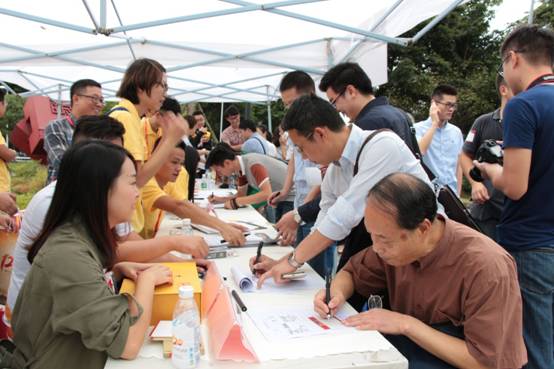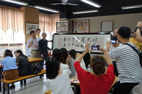 (签名墙前与校友一起合影)