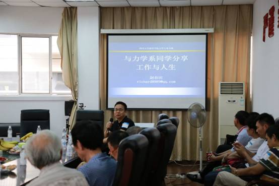 (赵春田校友在力学论坛上与老师、同学们分享工作与人生经历)