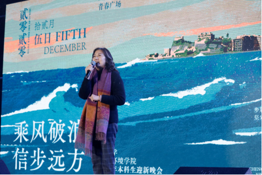 熊峰院长代表学院做了热情洋溢的开场致辞。她讲道,2020级新生同学们经历了一个特殊的年份,在疫情影响下仍然考出了好成绩,如愿来到了理想的大学,希望同学们能够珍惜大学时光,以蓬勃的朝气迎接挑战、奋力拼搏,在建环度过一段难忘的大学时光。