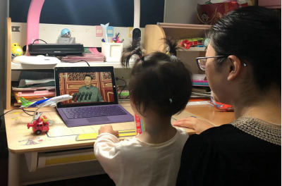 此外,学院师生通过多种形式在实验室、办公室、宿舍等收看庆祝大会。学院土木系石宵爽老师在家里,带着女儿一起观看直播并分享了学习心得,表示“我心向党,童心向党”,通过自己的言传身教,教育孩子爱国爱党爱人民。国家海外高层次人才引进计划特聘教授、力学系赵春田老师在观看直播时感叹,“在路上,跟党走”。建筑系谭敏老师通过学院微信群分享了自己的激动心情,表达了自己对祖国的祝愿。