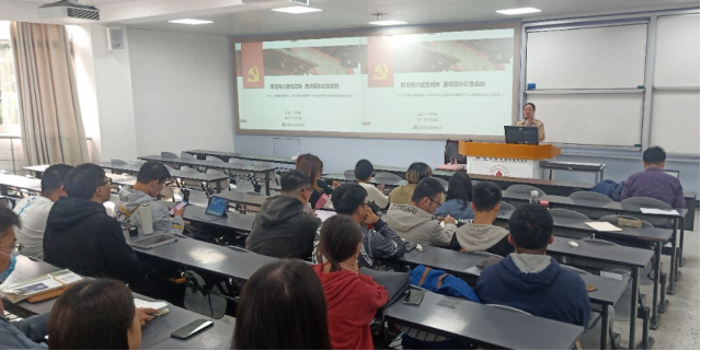 为深入学习习近平总书记在庆祝中国共产党成立100周年大会上的重要讲话,感悟伟大建党精神。学院2018级本科党支部于2021年10月29日在江安校区一教B座B207教室开展以“感悟伟大建党精神 赓续百年红色血脉”为主题的党课,本次党课由支部书记周琦颖主讲,支部全体党员参与学习。
