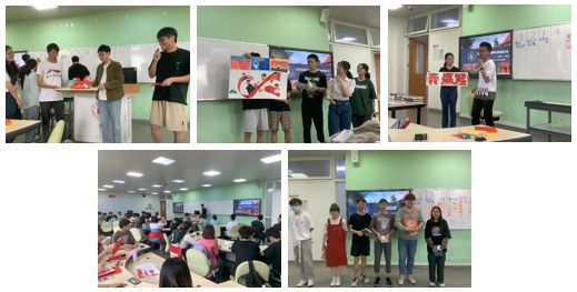 在制作过程中,同学们重温了五四精神内涵,对作品内容做深入思考,在设计上各显身手,在展示上细致生动。活动现场气氛热烈,同学们积极参与,互相交流,共同探讨,并对自己喜爱的作品表达鼓励与肯定。