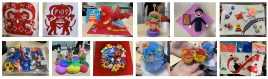 折纸组的同学们将折纸、贴纸、剪纸与绘画创意组合,重现了四段经典党史故事,以此展现新时期青春大有可为,鼓励同学们努力奋进!粘土组的作品有的是以“2023年‘成都青年五四奖章’”获得者的职业为灵感来源,结合动画片《那年那兔那些事儿》中的动漫形象,利用粘土制作医生、教师、军人等卡通形象,向各行各业的劳动者致敬;有的是以天安门、高铁、飞天火箭等为切入点,展示了对党和国家未来的美好期望与热爱。陶泥组的同学们则通过手工作品展现了从五四运动时的国家积弱、外国入侵到如今国家山东舰、辽宁舰,国家海军军事实力的不断突破和迅速发展。绘画作品则展现了一群充满朝气和活力的青年人紧密团结在一起,为了国家的进步和发展而不断奋斗。