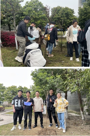 在大家共同努力下,建环楼前多了一抹生机,十棵小树正迎着和煦春风、伴着温暖的阳光努力生长!与之一起努力生长的还有同学们对未来的期许与梦想!