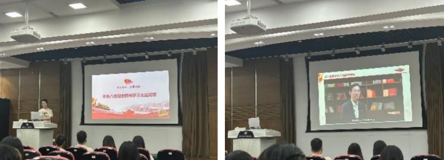 研究生环境四支部王润青带领与会党员学习了中央八项规定精神。王润青系统阐述了中央八项规定的核心内容及其精神实质以及违反中央八项规定精神的具体表现形式,引导党员们深刻认识作风建设的重要性和长期性。与会党员观看了微党课视频《锲而不舍落实中央八项规定精神》。微党课以生动警示案例,强化了学生党员纪律意识和规矩意识,筑牢拒腐防变的思想防线。